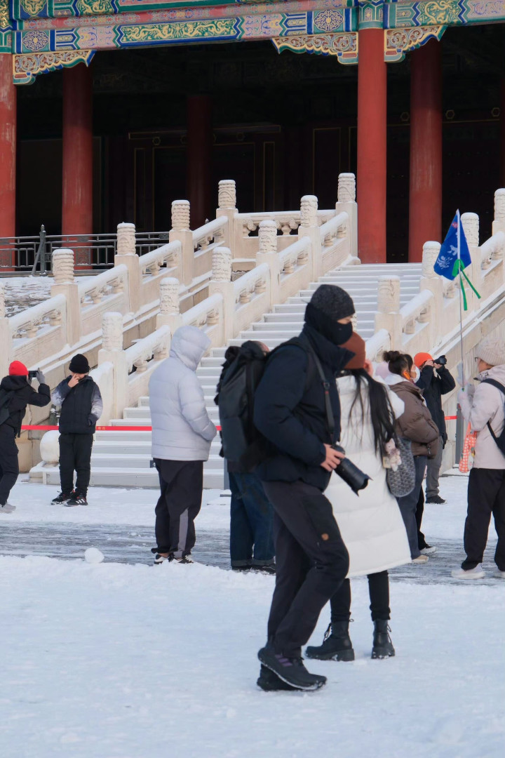 李现故宫拍雪景被偶遇, 路东谈主镜头下帅得好松懈, 这大长腿太吸睛了