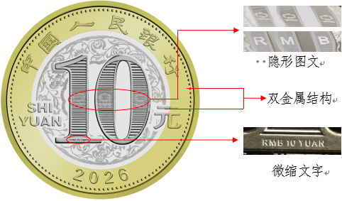 2026年贺岁双色铜合金系念币公众防伪特征合座效力见图5。